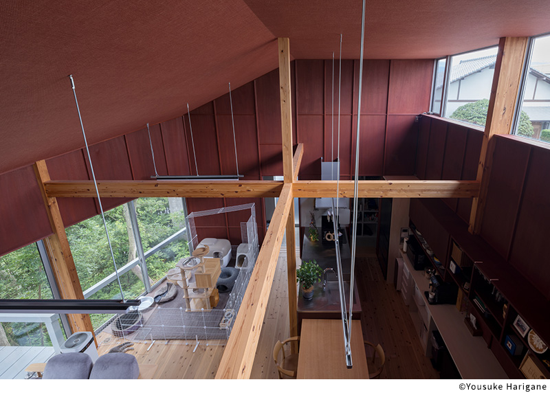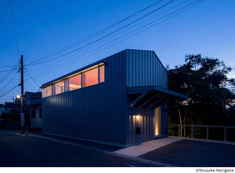このたび、木々に遅ればせながら施主家族がこの土地へ住み着く。平地の住人が車から人に代わったことで、多くの生物が住む斜面地はどう変化してゆくのだろうか。
