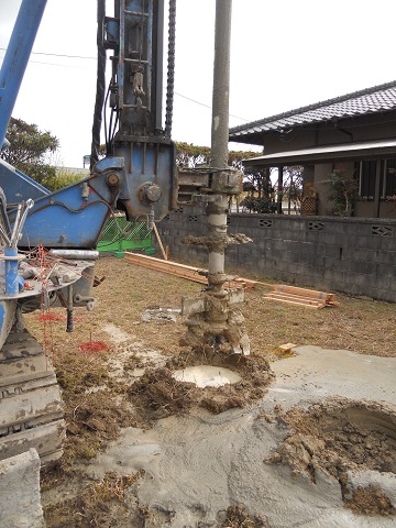 その開けた穴にセメントミルクを充填していき、それが固まると杭になるというものです。