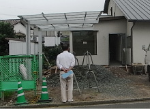カーポートの下がコンクリート舗装になっていたが、その他は砂利敷にするかどうかは未定だった。砂利が道路に出ないよう、道路沿いをコンクリートにしてもらおうかと話を切り出したら、陶山さんがちゃんと考えていて、全部コンクリートを張るような図面を示された。「値段もそうかかりませんから」