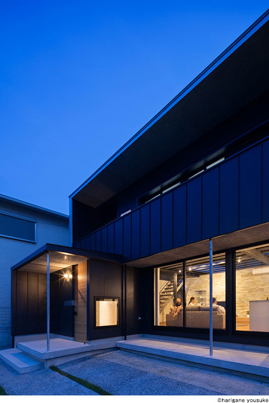 重量と存在感のある素材をすっきりした線や面で構成することで、人目を惹くスタイリッシュでモダンな家を目指しました。