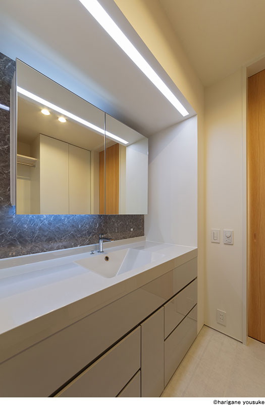 また、ワンちゃんとの暮らしということで、特に床や腰回りの壁、収納の材質等はメンテナンスに配慮した素材や仕上げを採用しています。